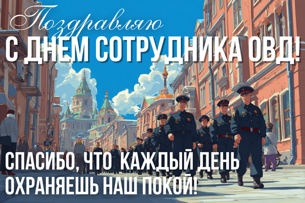 - Поздравляю с Днем сотрудников ОВД! Желаю меньше тревожных звонков и больше хороших историй в служебной практике. Ваш труд бесценен!