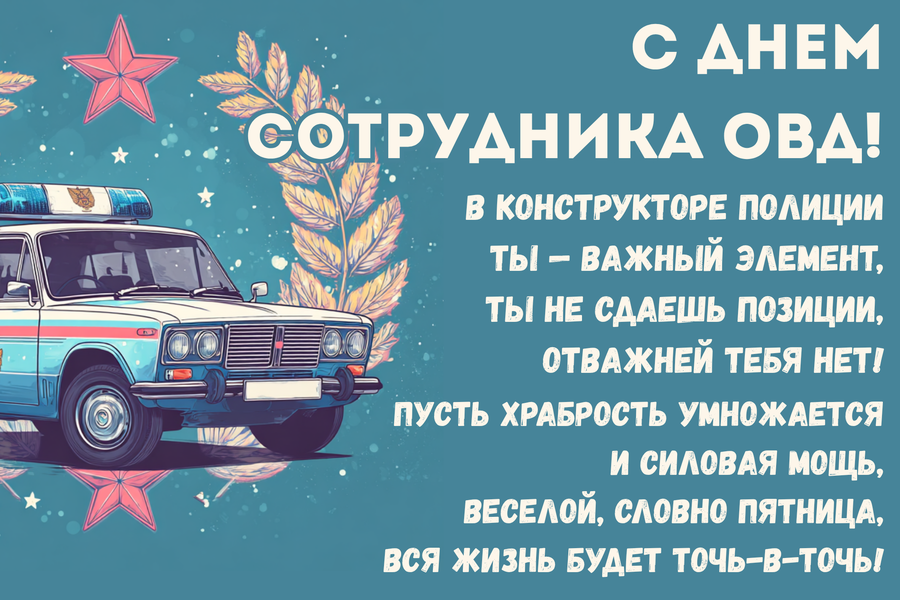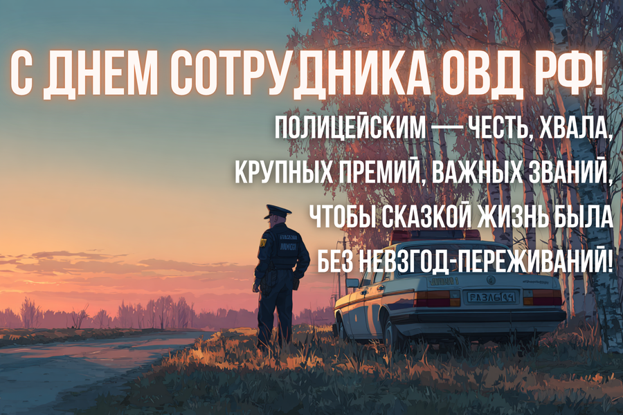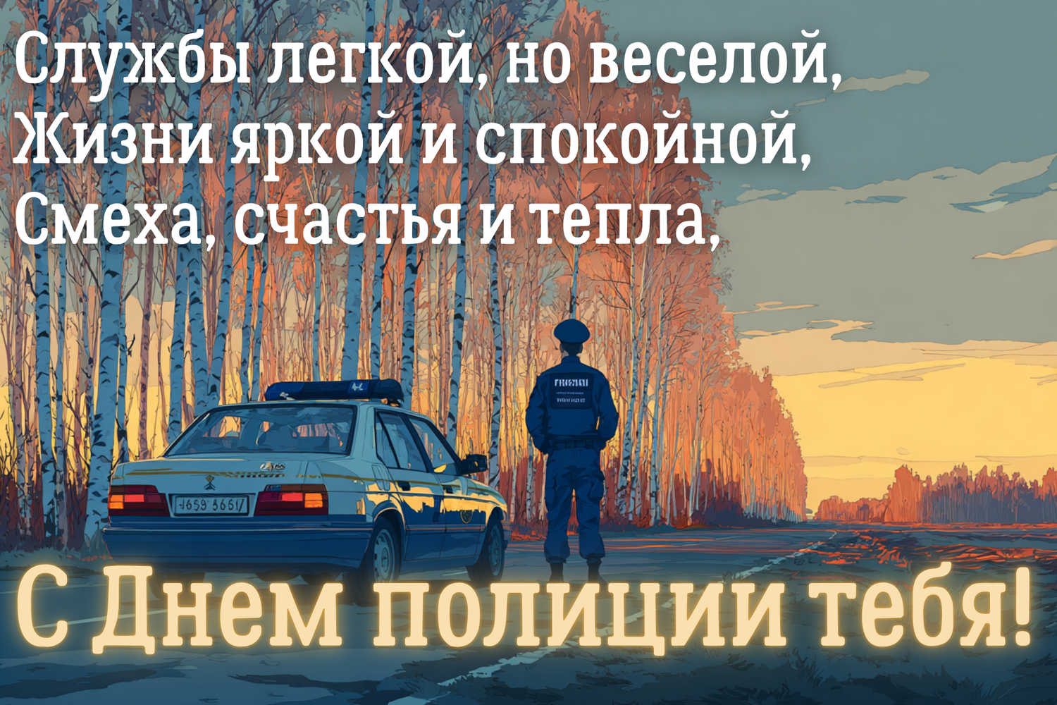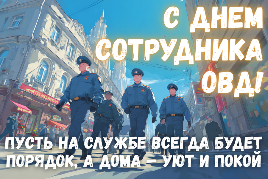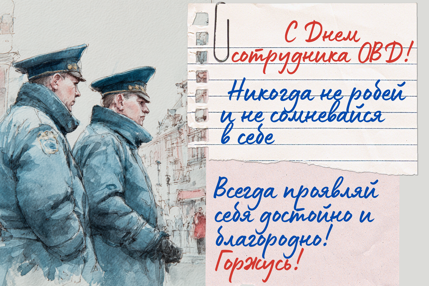 • С Днем сотрудника органов внутренних дел! Пусть служба будет спокойной, а дом — теплым и надежным тылом.