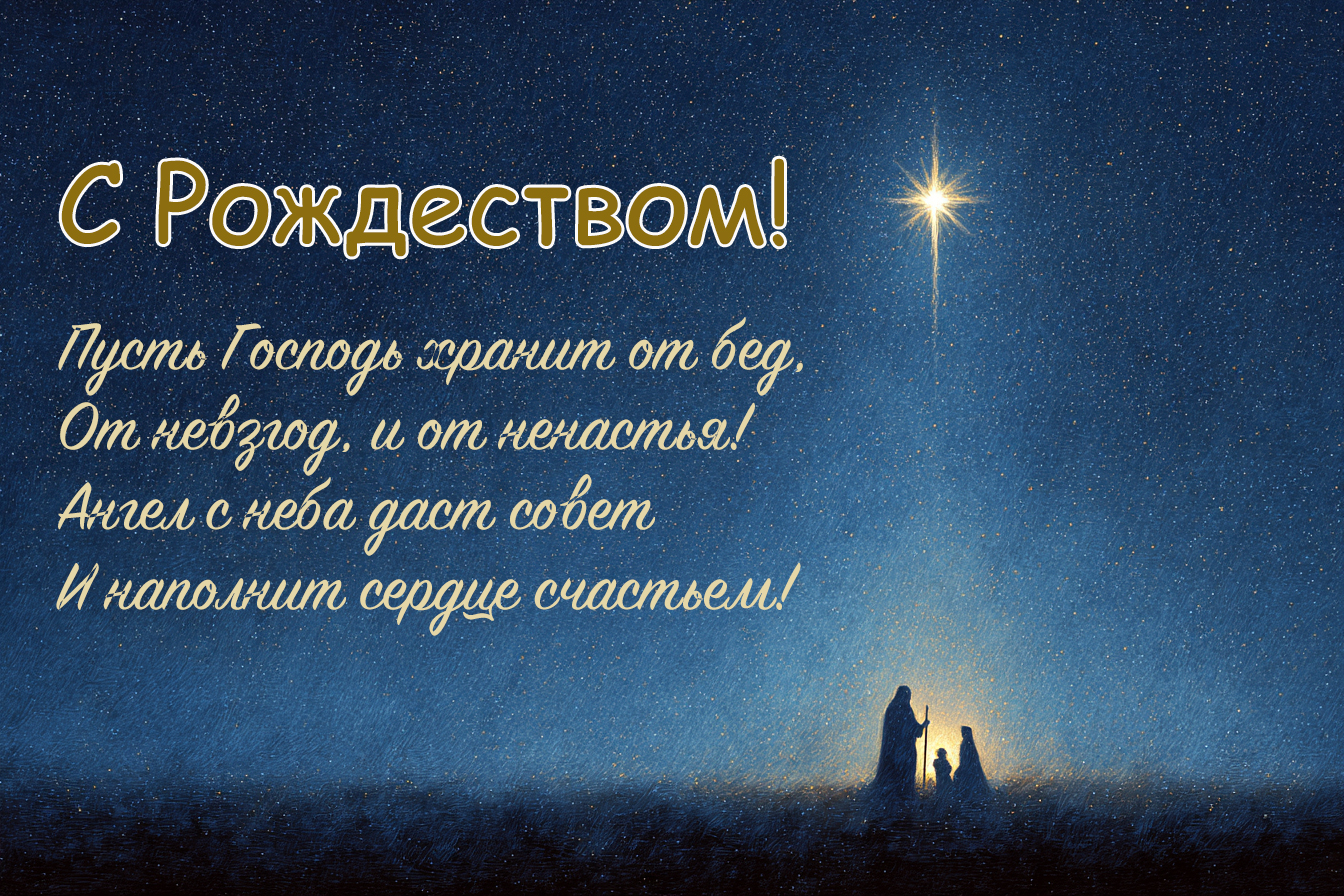 - Со светлым праздником Рождества Христова! Пусть тебя всегда окружают добро, свет и забота близких!