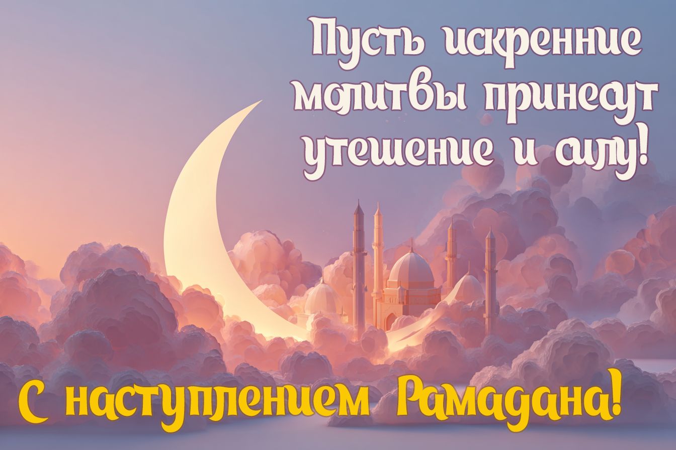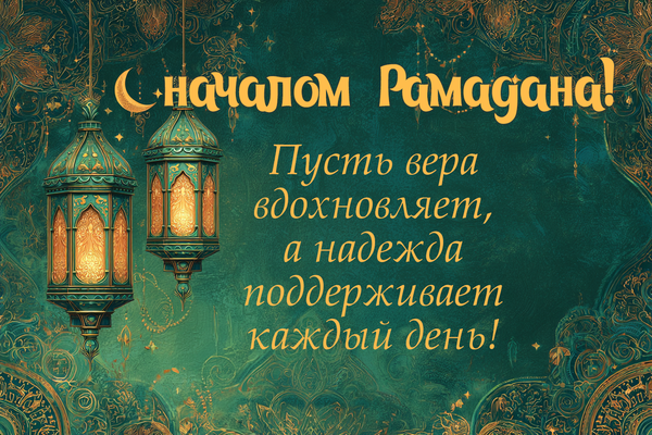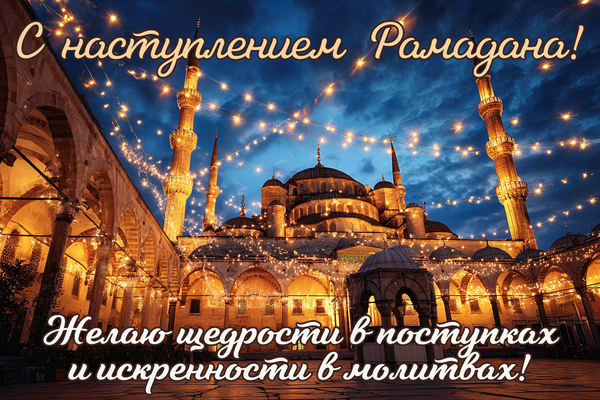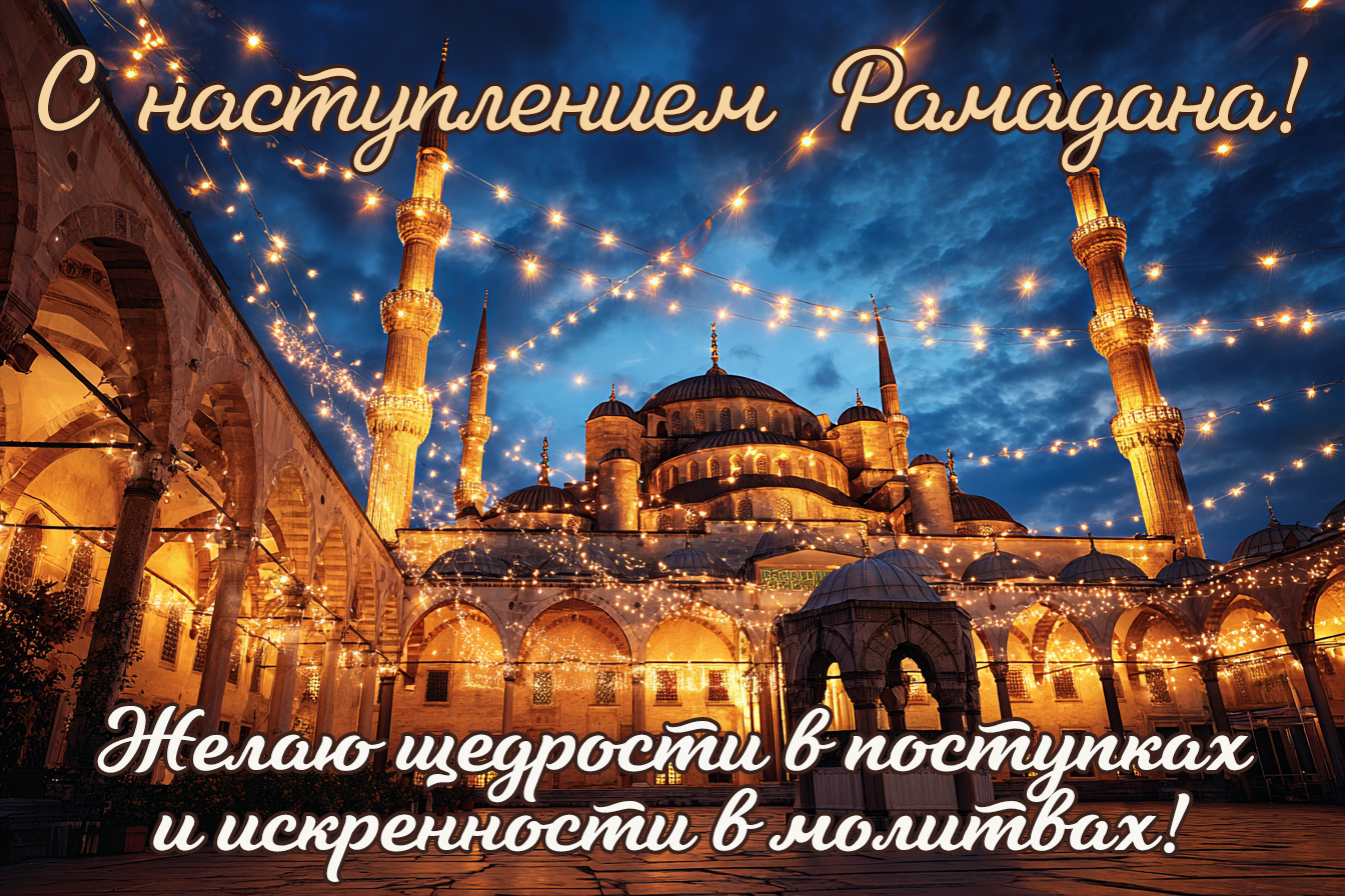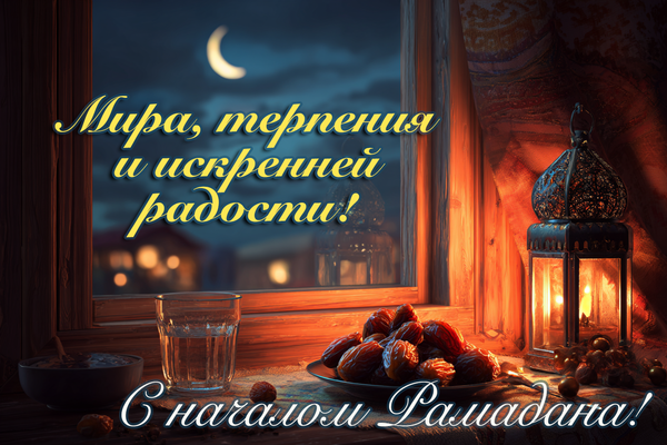 - С началом священного месяца Рамадан! Пусть каждый закат напоминает о благодарности, а каждый рассвет — о надежде.