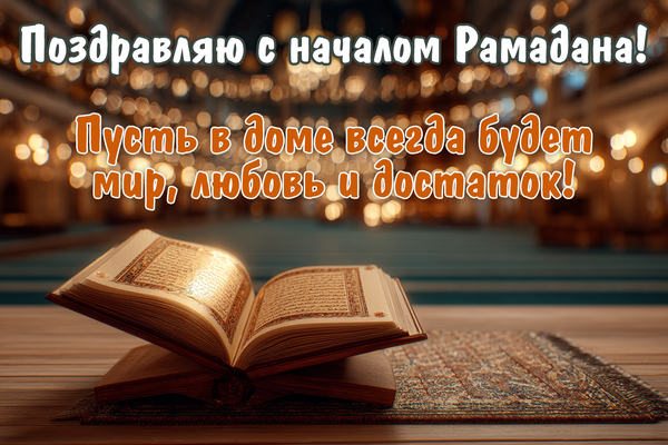- С началом священного месяца Рамадан! Пусть в нашем доме всегда звучат молитвы, а сердца будут под защитой Аллаха!