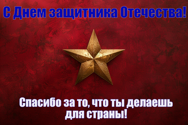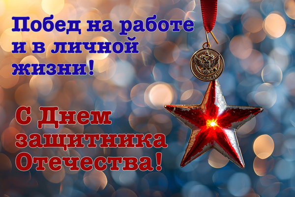 • С Днем защитника Отечества! Желаю, чтобы и на работе, и в жизни у вас были только победы!