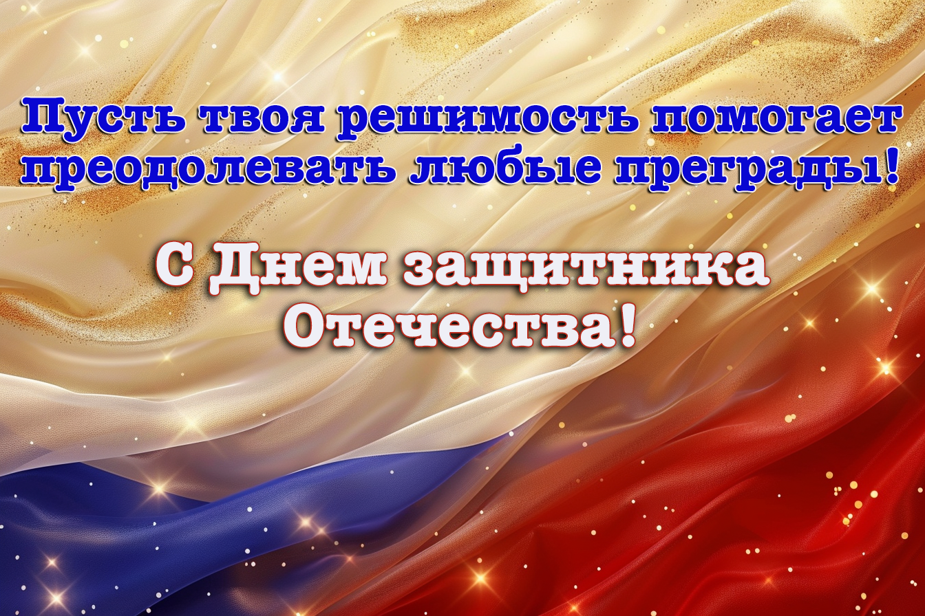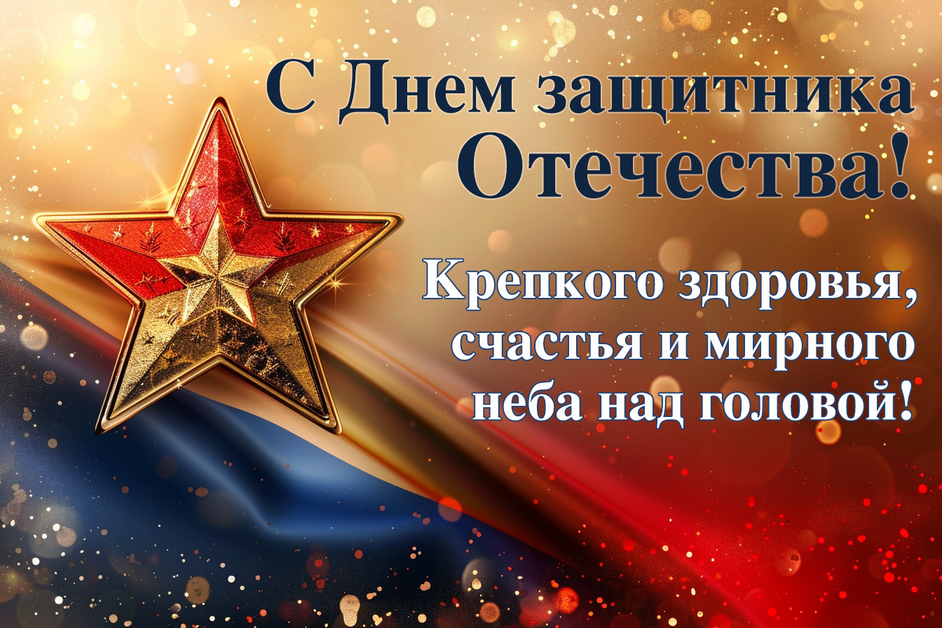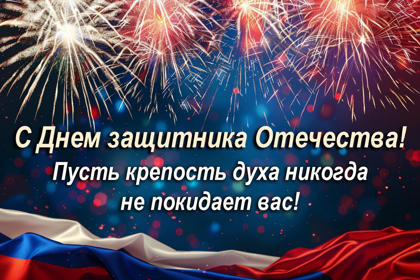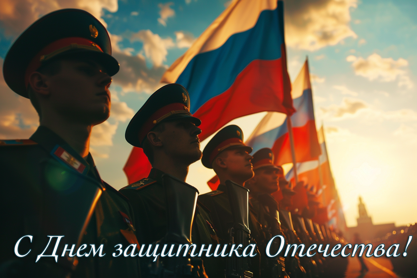 • С праздником, наши защитники! Пусть все ваши усилия приводят к впечатляющим результатам и победам в любом деле!