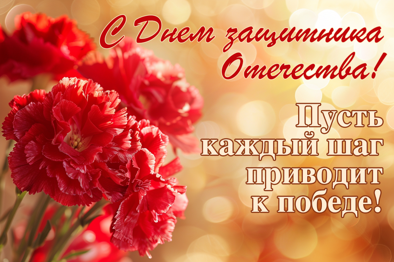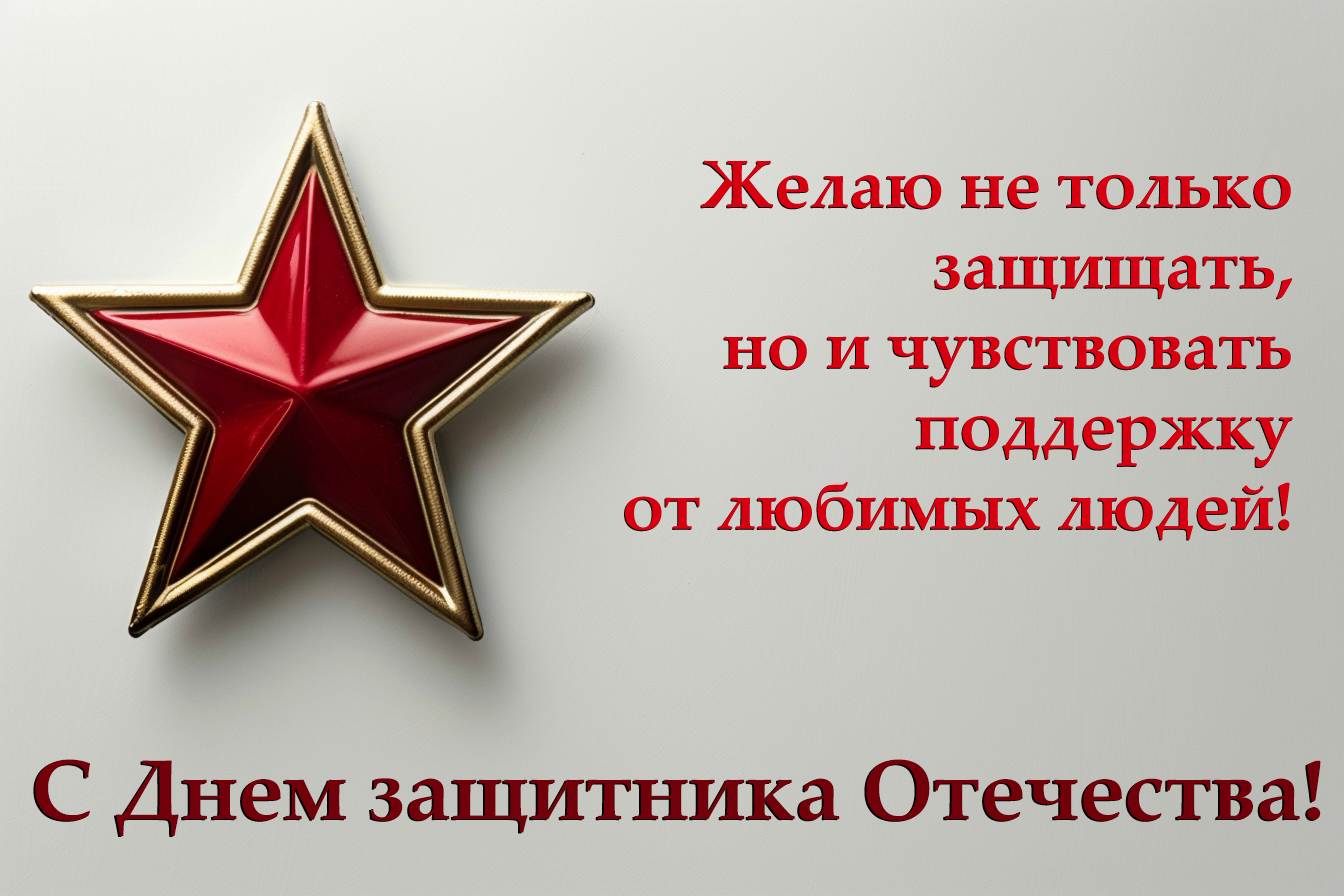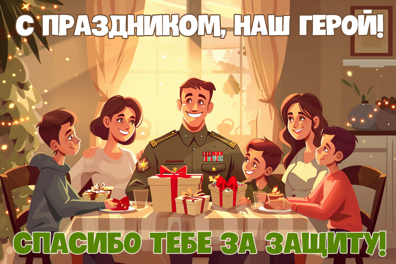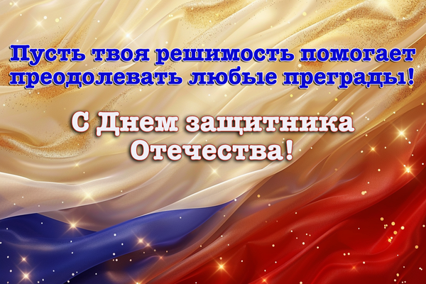 • С праздником, наши защитники! Пусть все ваши усилия приводят к впечатляющим результатам и победам в любом деле!