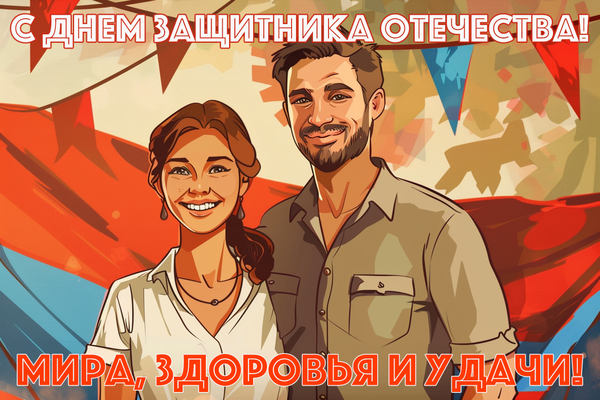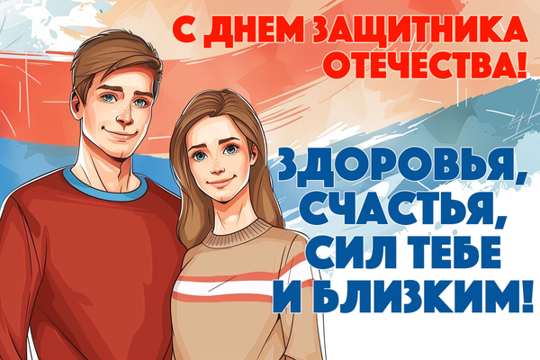 • С Днем защитника Отечества! Вы — главные защитники нашего дела! Пусть любые задачи будут вам по плечу! Желаем больших премий и солнечных дней в отпусках!