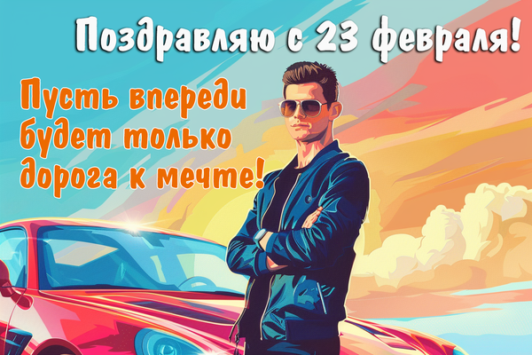 Чтобы поздравить мужчину с праздником, поделитесь с ним красивой открыткой. Для этого скачайте ее на смартфон или компьютер и отправьте в мессенджере. А чтобы поздравить сразу всех друзей и знакомых, опубликуйте понравившуюся открытку в социальных сетях.