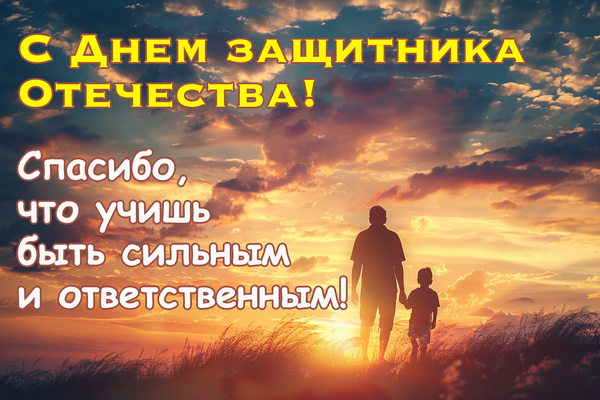 • С Днем защитника Отечества! Горжусь тобой и твоей самостоятельностью! Пусть твой энтузиазм не угасает, а сила духа только крепнет!