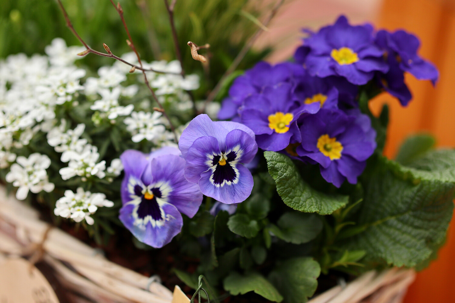 * Анютины глазки (виола) — не требуют яркого прямого солнца, комфортно себя чувствуют в легкой полутени, цветут все лето и даже теплой осенью. Виоле нужна температура от 15 до 21 ℃, поливать ее достаточно два раза в неделю. Морозостойкие сорта способны выдерживать температуры 5–10 ℃.