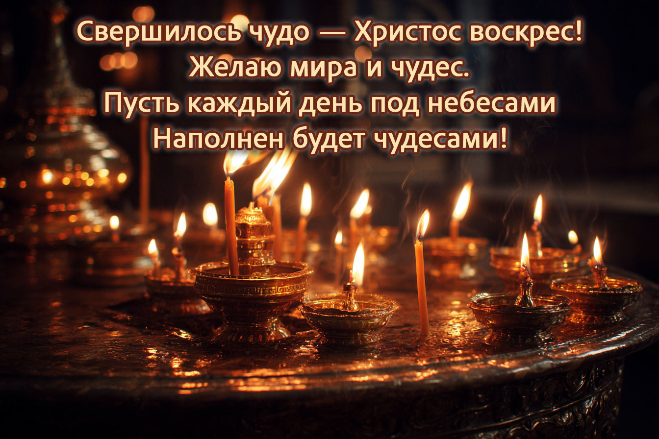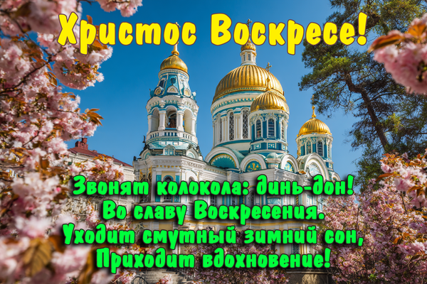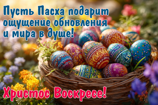 * Христос воскресе! Желаю, чтобы свет этого праздника разогнал все тревоги и наполнил жизнь смыслом и покоем!
