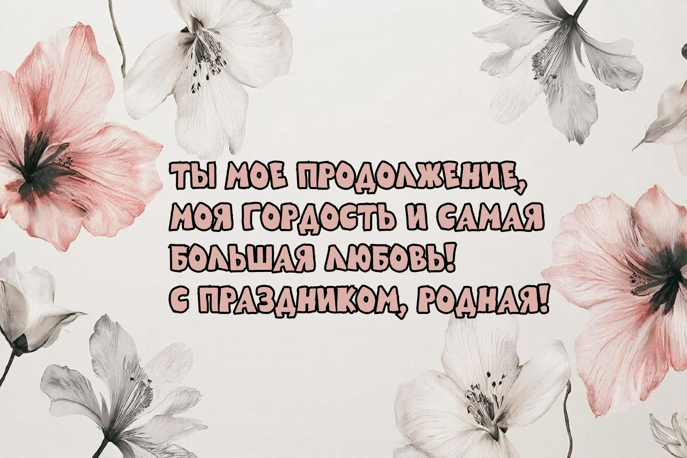 * Дочка, ты — мой самый главный подарок судьбы! С праздником! Пусть жизнь тебя балует и радует! А я всегда рядом и поддержу!