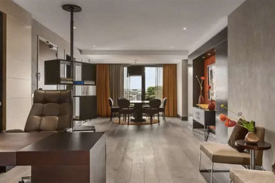 В апартаментах были предусмотрены спальня с кроватью размера king-size, две ванных с тропическим душем, отдельная комната для встреч и личная терраса, из которой открывается вид на город.