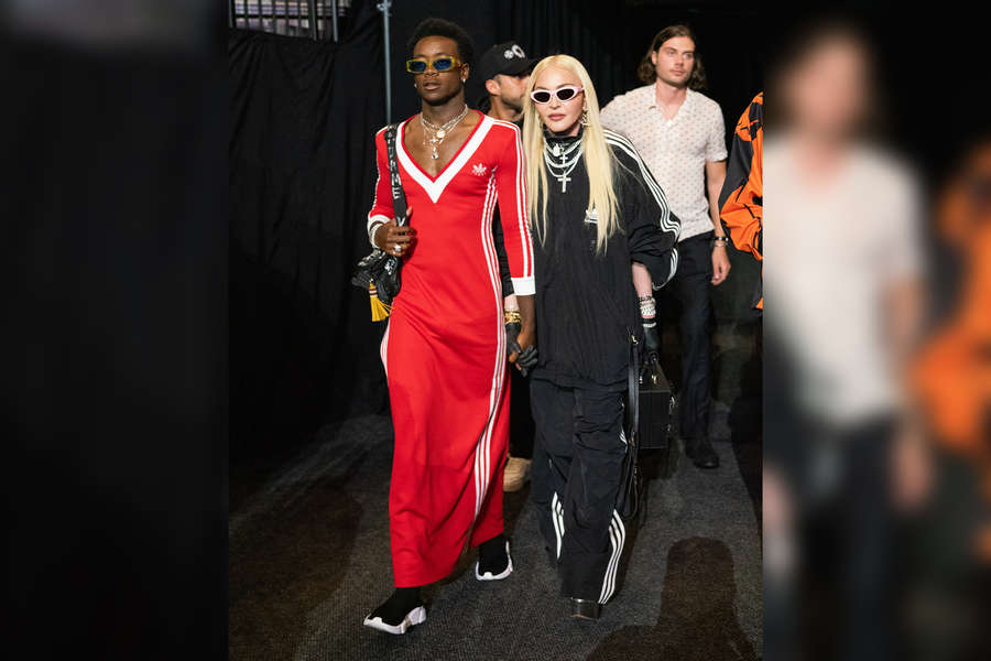 Для похода на спортивное соревнование Банда выбрал красное платье по фигуре из коллаборации Adidas x Gucci, которое еще не появилась в продаже. В дополнении к платью сын Мадонны надел массивные цепи, кроссовки и солнцезащитные очки в золотой оправе. Красное платье Adidas x Gucci было вдохновлено архивным нарядом 1993 года, созданным вместе с дизайнером Лорой Уиткомб из Label NYC.