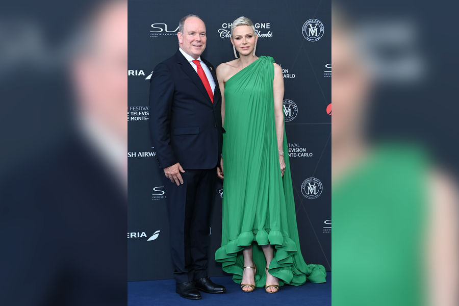 В минувшую пятницу, 17 июня, в Монте-Карло прошел 61-й телевизионный фестиваль. Мероприятие посетила княжеская чета Монако. Для выхода в свет княгиня Шарлен выбрала изумрудное платье на одно плечо Lanvin с воланами на подоле стоимостью £2670 (187 701 руб.). Образ монаршей особы дополнили золотые босоножки на шпильке и ювелирные украшения — длинные висячие серьги и браслеты.