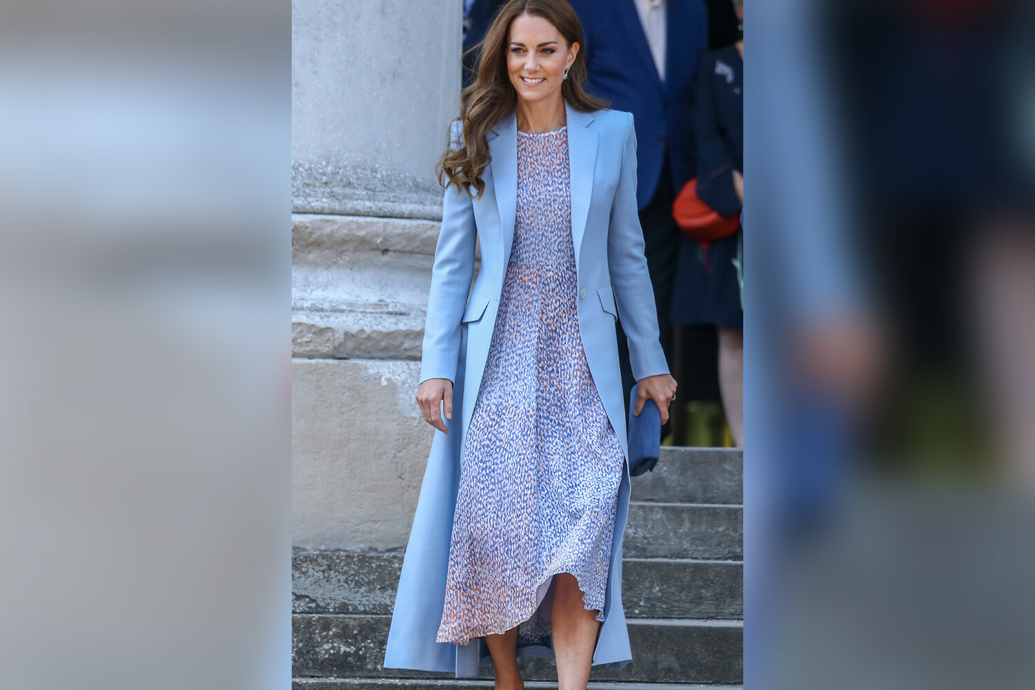 Герцогиня Кембриджская Кейт Миддлтон появилась на публике в незабудковом пальто, вызвав критику в социальных сетях. Об этом сообщает издание elle.ru.