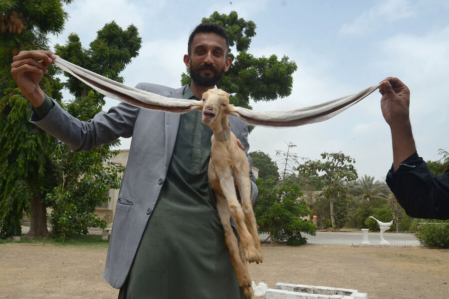 Козленок из Пакистана стал звездой соцсетей благодаря своим необычайно длинным ушам. Об этом пишет издание Mirror.