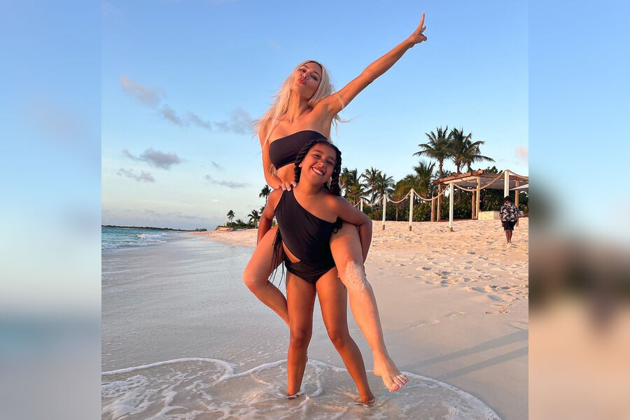 С тех пор, как Ким Кардашьян сильно похудела, она не устает делиться с подписчиками фотографиями своего стройного тела. На днях Ким показала, как отдыхает с детьми на пляже. На одном из снимков звезда реалити показала, как забралась на спину своей 9-летней дочери Норт, и та стойко пронесла мать несколько метров по берегу.