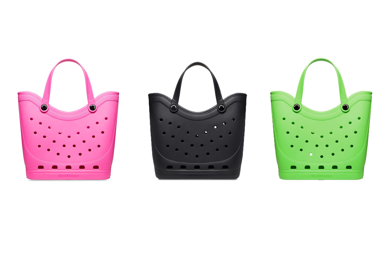 Модный дом Balenciaga и бренд Crocs продолжают сотрудничество: на официальном сайте французского бренда появились резиновые сумки с перфорацией и чехлы для мобильных телефонов.