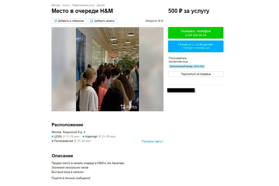 Места в очередях в магазины H&M начали продавать на «Авито». Об этом сообщает Telegram-канал РБК.