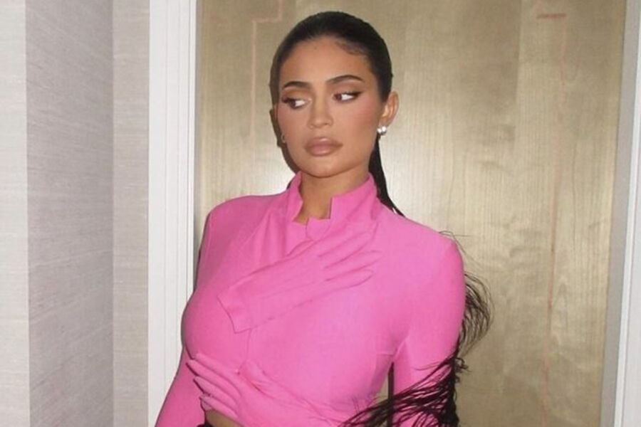 Для светского выхода бизнесвумен выбрала винтажный наряд Comme Des Garçons из осенней коллекции 2007 года. Комплект состоял из ярко-розового топа и черной мини-юбки с перчатками, будто бы обнимающими тело девушки. Образ Кайли Дженнер дополнила миниатюрной черной сумкой геометричной формы из коллекции Amina Muaddi.