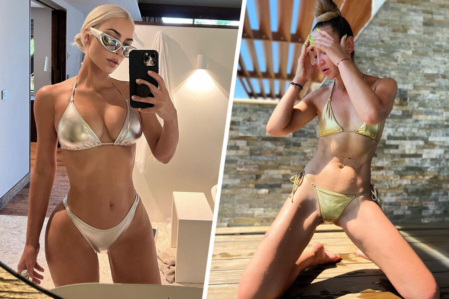 В прошлом месяце в похожем купальнике снялась Ким Кардашьян. Звезда реалити-шоу выпустила коллекцию металлизированных купальников Metallic Swim, вдохновленной эстетикой 1980-х. В линейку вошли разные модели как слитных, так и раздельных купальников, а также шорты с высокой посадкой и юбка.