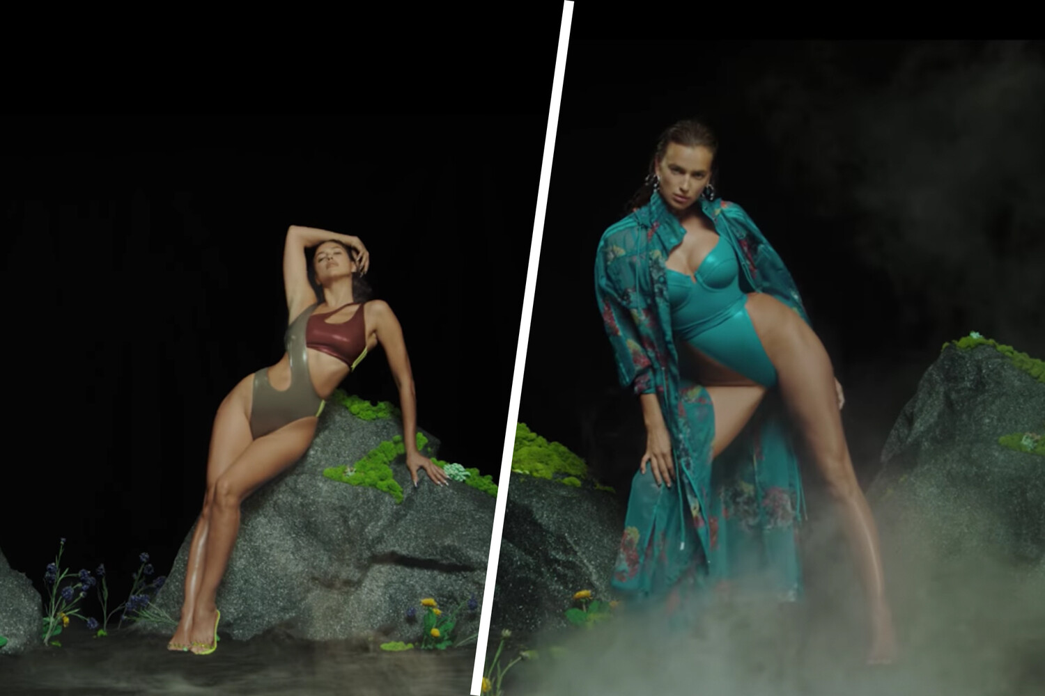36-летняя Ирина Шейк выложила в личном блоге новый видео-кампейн adidas x IVY PARK. В кадре российская супермодель сменила несколько купальников — от раздельного неонового до слитного бирюзового с чашками — и позировала в бикини посреди мшистых скал.