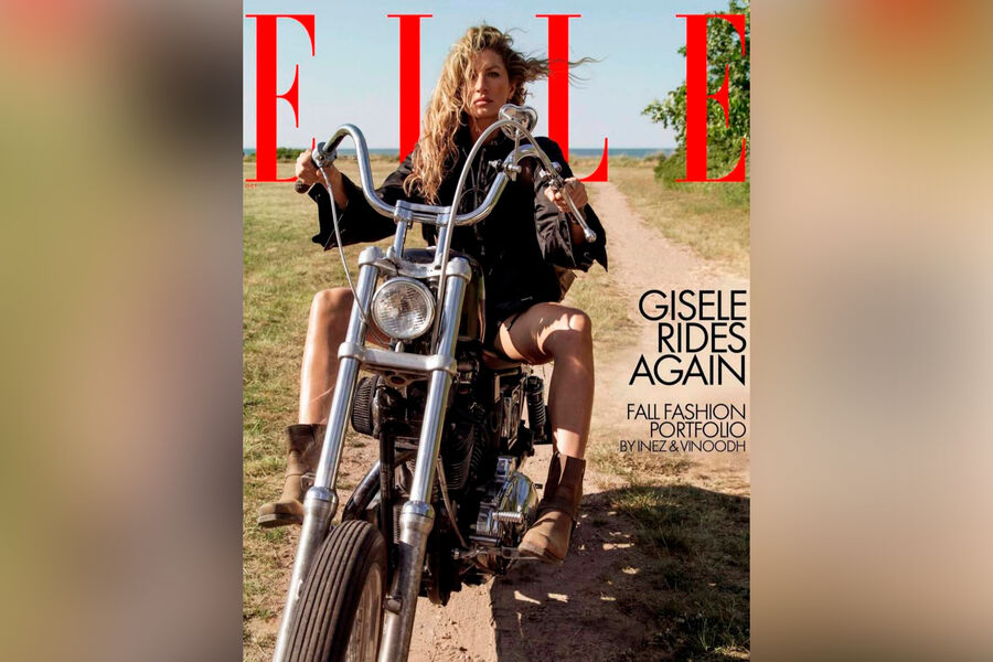 На обложке 42-летняя Жизель Бюндхен позировала на мотоцикле в черных микрошортах, белом топе и кожаной косухе. На других фотографиях она сменила образ и выбрала кожаные брюки и топ.