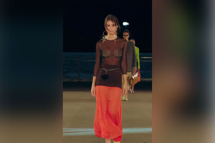 В рамках Недели моды в Нью-Йорке прошел показ американского бренда Tory Burch. Эмили Ратаковски вышла на подиум и продемонстрировала образ с прозрачным топом, оранжевой юбкой-макси и желтыми туфлями. Из аксессуаров дизайнеры добавили массивные серьги, кольца и пояс с сумкой.