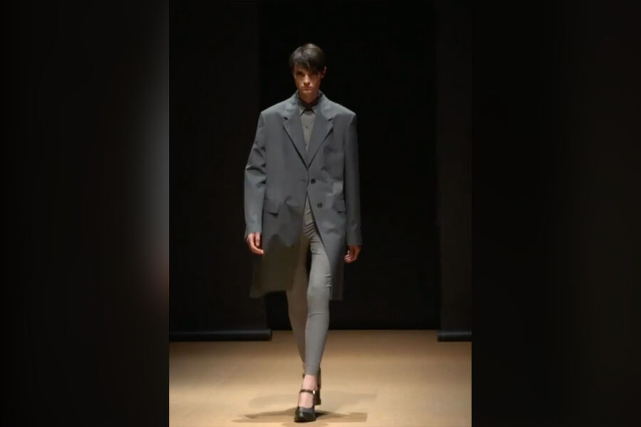 На миланской неделе моды итальянский модный дом Prada представил коллекцию сезона «Весна-лето 2023». Честь открывать показ досталась российской модели Тане Чурбановой, которая вышла на подиум в легком сером пальто, такого же цвета обтягивающих брюках и рубашке.
