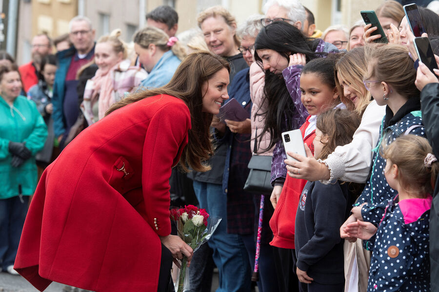 Для поездки Кейт Миддлтон выбрала алое пальто LK Bennett, почтив тем самым память принцессы Дианы. Последняя, не успев стать принцессой Уэльской в 1981 году, также отправилась в Уэльс и тоже в красном. Правда, на ней было не пальто, а жакет Donald Campbell.