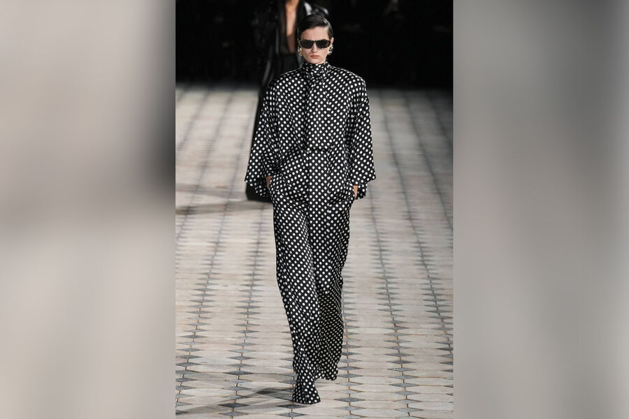 Сегодня, 27 сентября, в рамках Недели моды в Париже состоялся показ коллекции Saint Laurent Spring Summer 2023. Среди моделей, принявших участие в шоу, оказалась Таня Чурбанова. Россиянка вышла на подиум в солнцезащитных очках и черном комбинезоне в белый горох.