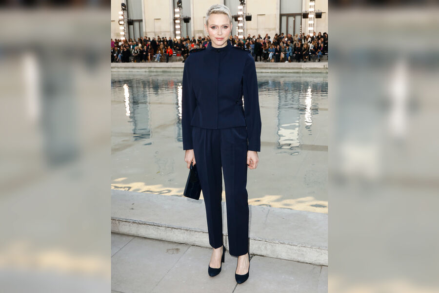 Супруга князя Альбера II впервые за последние четыре года прибыла в Париж, чтобы посетить показ Akris. Княгиня Шарлен заняла место в первом ряду. Она была одета в темно-синий комплект, состоящий из рубашки с погонами и брюк со стрелками. Его дополнили черная сумка и туфли на устойчивом каблуке.