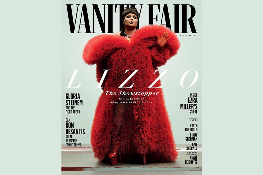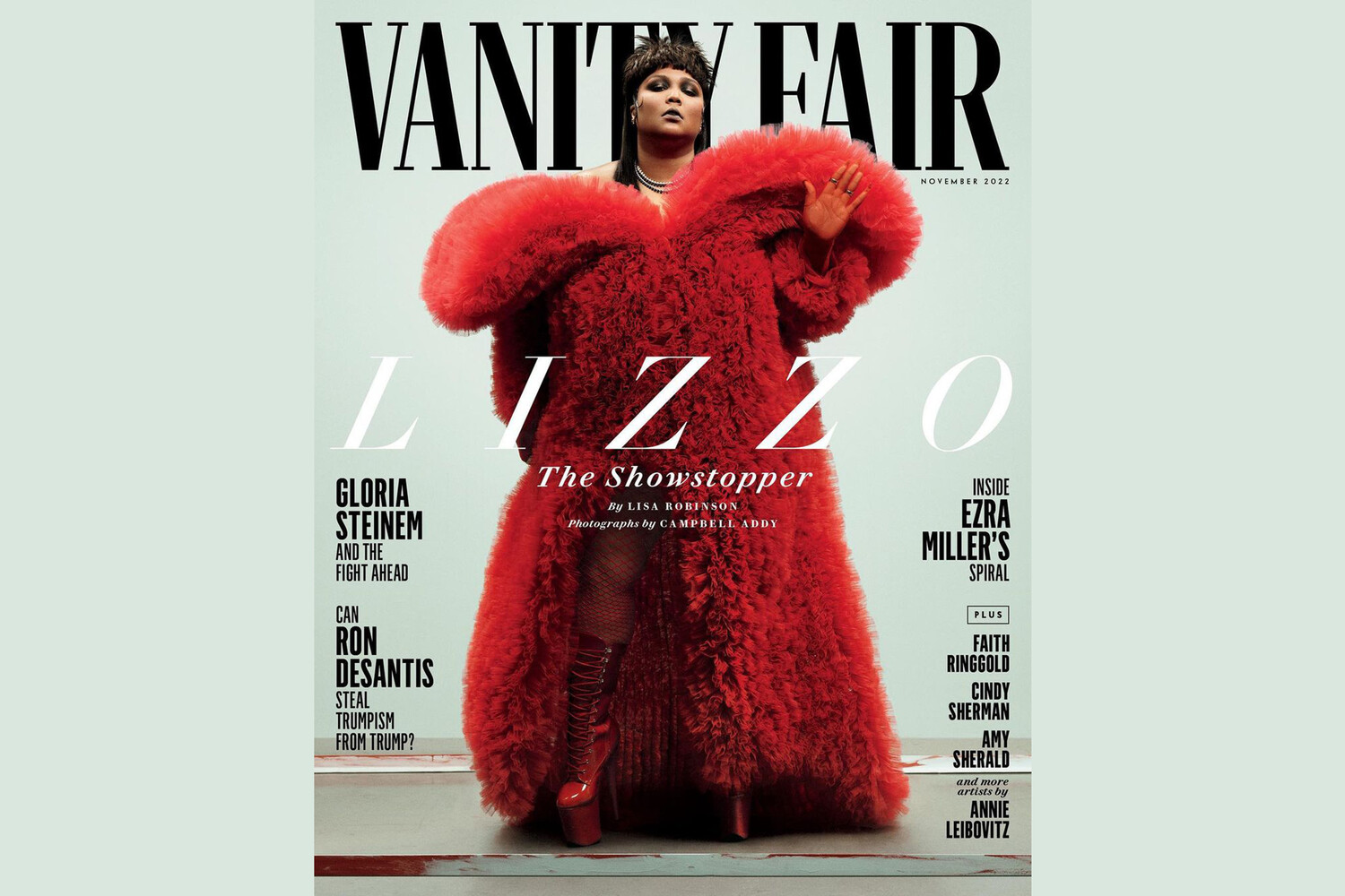 Певица Лиззо стала лицом ноябрьского номера журнала Vanity Fair. Звезда позировала в пышном красном платье-бюстье на голое тело. Образ дополнили массивные украшения, колготки в сетку и туфли на высоком каблуке и платформе. Специально для обложки Лиззо сменила стрижку и сделала «рваную» челку. Певице также нанесли яркий вечерний макияж в шоколадных оттенках.