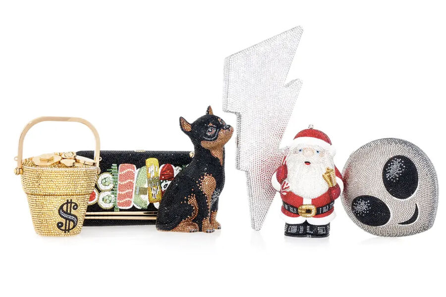 Все клатчи полностью усыпаны кристаллами, поэтому несмотря на миниатюрный размер, обойдутся недешево. Так, горшочек с золотом от Хлои будет стоить $5995, суши-ланч от Кортни $4495, Санта Крис, инопланетянин Ким и молния Кайли по $4 995 долларов, а доберман Кендалл обойдется в $5695.