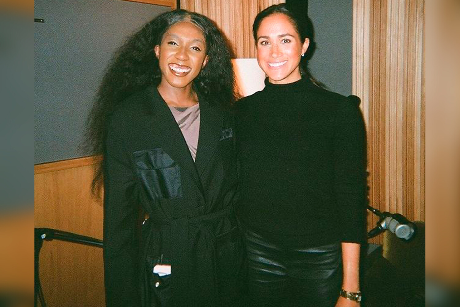 В социальных сетях появилась новая фотография Меган Маркл, сделанная во время записи нового эпизода ее подкаста «Архетипы» для Spotify. На опубликованном снимке она запечатлена вместе со своей гостьей — комиком Зиве Фумудо.