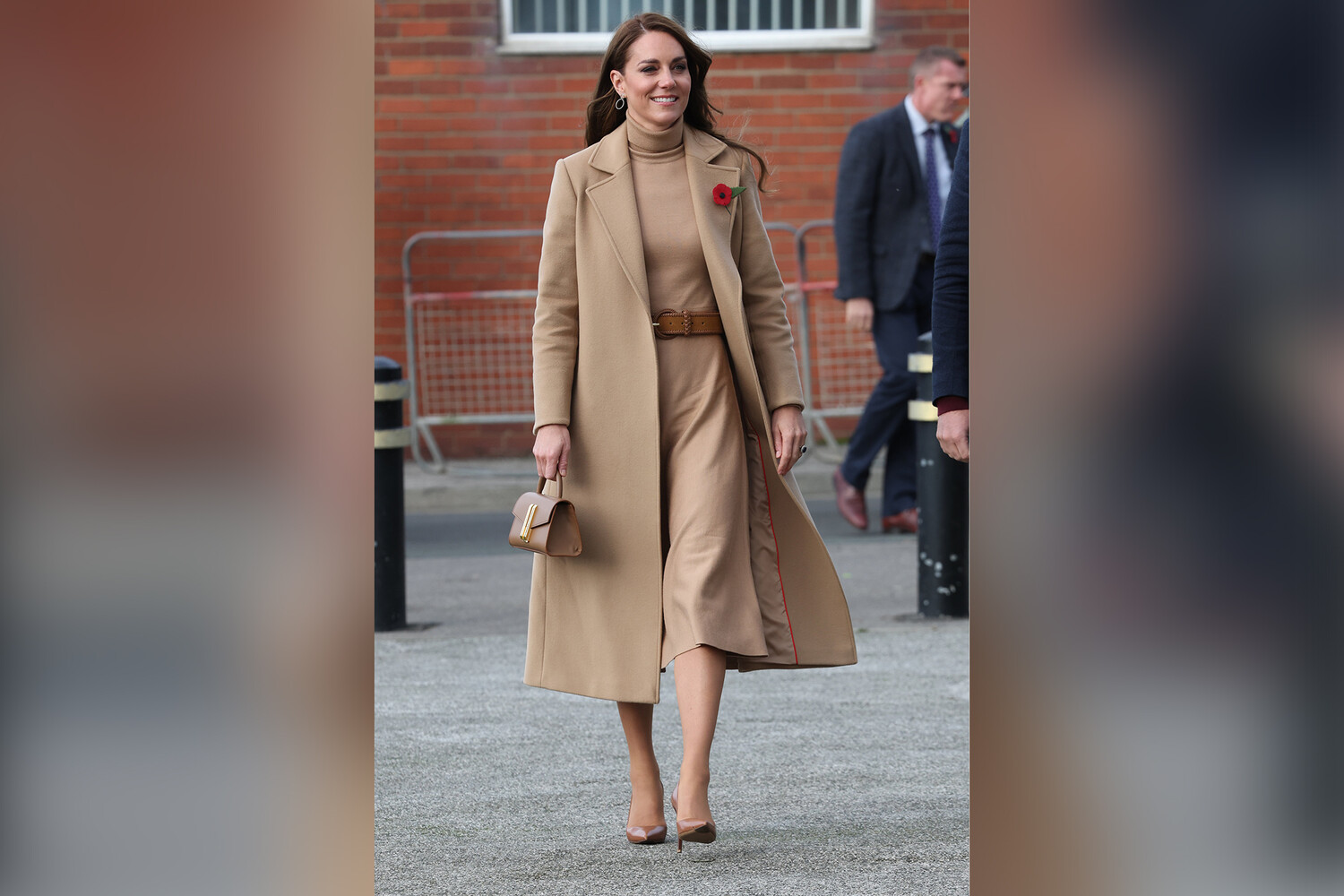 Кейт Миддлтон появилась на публике во всем бежевом. На ней были трикотажное платье, шерстяное пальто Max&Co и лаковые туфли-лодочки на шпильке. Образ дополнили аксессуары: ремень Boden, сумка DeMellier London и серьги, стоимость которых удивила поклонников принцессы Уэльской — они обошлись ей всего в £5 (350 руб.), утверждает Express.