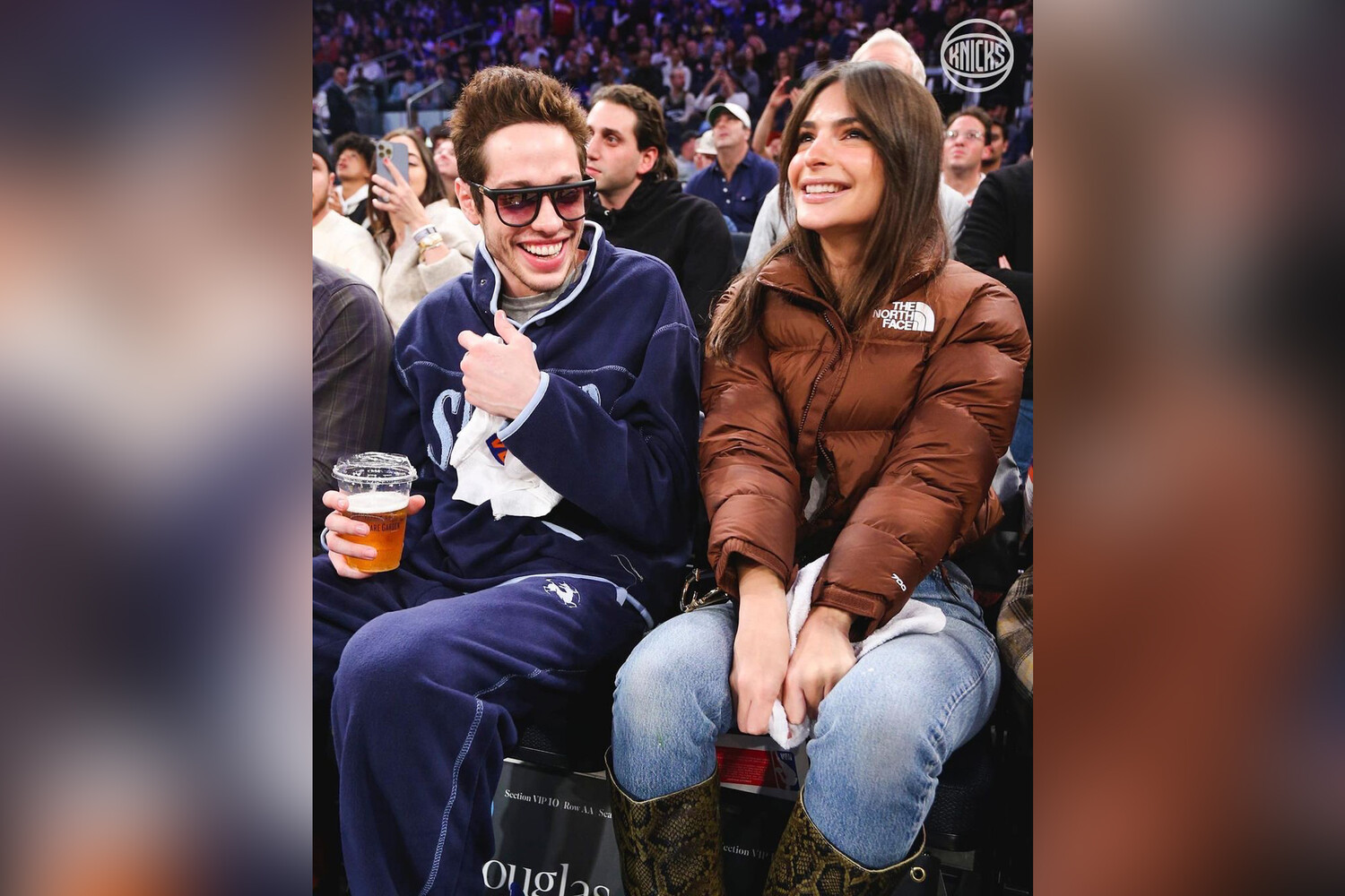 31-летняя модель и 29-летний актер следили за игрой команд «Никс» и «Гриззлис», сидя рядом в первом ряду стадиона Мэдисон Сквер Гарден. Ратаковски и Дэвидсон позировали фотографам, смеялись и пили пиво в компании Бена Стиллера и Джордин Спаркс. Модель была одета в обтягивающие голубые джинсы, коричневый пуховик и высокие сапоги со змеиным принтом, а бывший бойфренд Ким Кардашьян пришел на стадион в синем спортивном костюме и белых кроссовках.