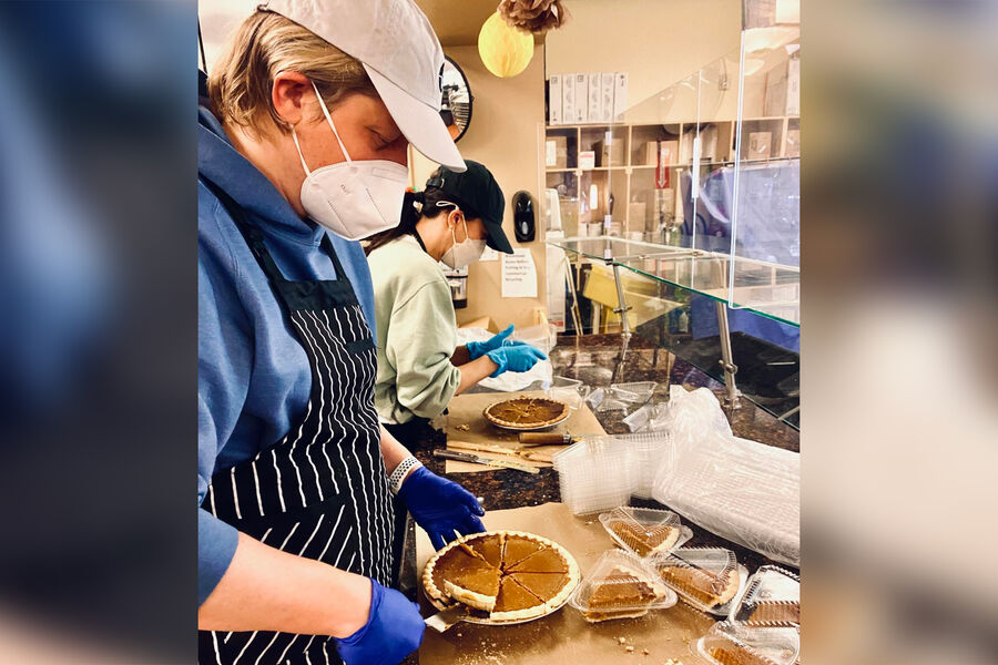 На фотографии, опубликованной на сайте фонда Меган Маркл и принца Гарри Archewell Foundation, видно, как члены их команды упаковывают кусочки тыквенного пирога в женском центре Downtown Women's Center в Лос-Анджелесе. Задача фонда — помогать бездомным женщинам, а также женщинам, страдающим от домашнего насилия. Среди женщин, работавших на кухне, пользователи разглядели саму герцогиню Сассекскую, которая, по всей видимости, не хотела привлекать внимание и спрятала лицо под маской и кепкой. Сообщается, что команда фонда приготовила более трехсот обедов для женщин в канун Дня благодарения.