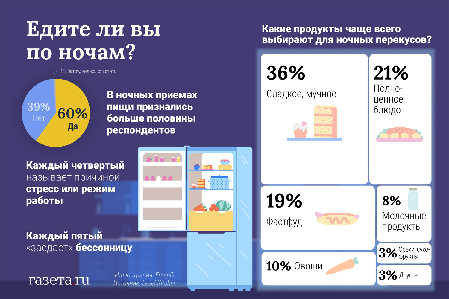 Каждый четвертый россиянин регулярно ест по ночам