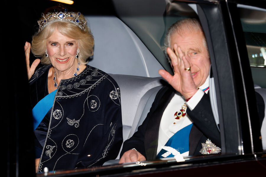 В этом году мероприятие проводили Карл III и его супруга Камилла. Последняя появилась на публике в темно-синем платье в пол Anna Valentine с полупрозрачными рукавами. К нему она надела комплект ювелирных украшений, известный как «Викторианская сюита короля Георга VI», — тиара, ожерелье и серьги с сапфирами. Эти драгоценности, ранее принадлежавшие Елизавете II, королева-консорт уже надевала на прием в честь президента Южно-Африканской Республики Сирила Рамафосы, который прошел в Букингемском дворце в конце ноября.