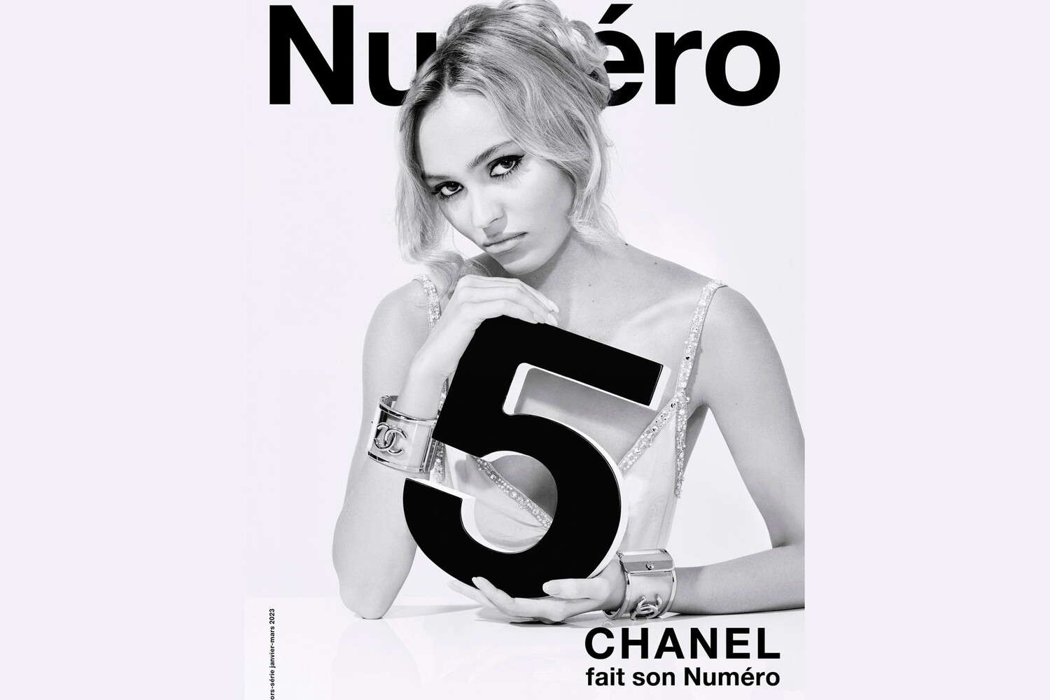 Сразу две актрисы стали героинями номера январь-март 2023. Марион Котийяр и Лили-Роуз Депп снялись для обложки издания. 23-летняя актриса позировала перед камерой в белоснежном платье-комбинации. В руках актриса держала фигуру в виде цифры 5.