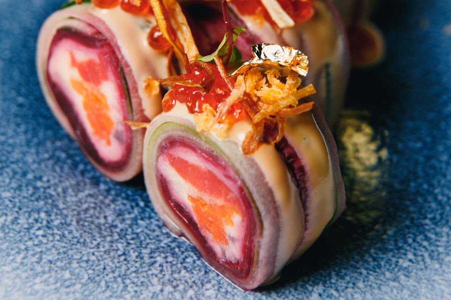 Разнообразить меню новогоднего стола можно при помощи традиционного салата в новом прочтении – копченого тунца под шубой в виде роллов. Рецептом оригинального «Ролла а-ля Русс» с «Газетой.Ru» поделился шеф-повар ресторана Lark Cafe Александр Аношкин.