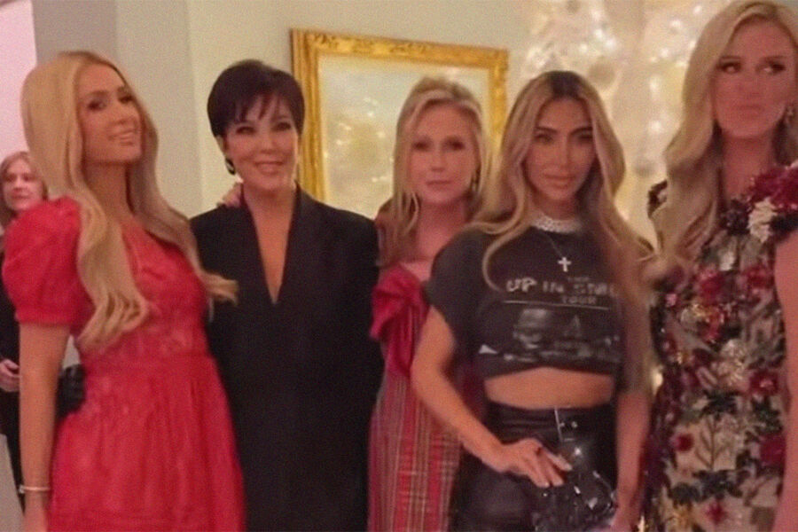 В соцсетях появилось фото с вечеринки, на котором позируют Ким Кардашьян, ее мать Крис, сестры Хилтон — Пэрис и Ники, — вместе с организатором вечеринки, 63-летней Кэти Хилтон. Внимание комментаторов оказалось приковано к наряду 42-летней Ким Кардашьян, который сочли несоответствующим формату мероприятия.