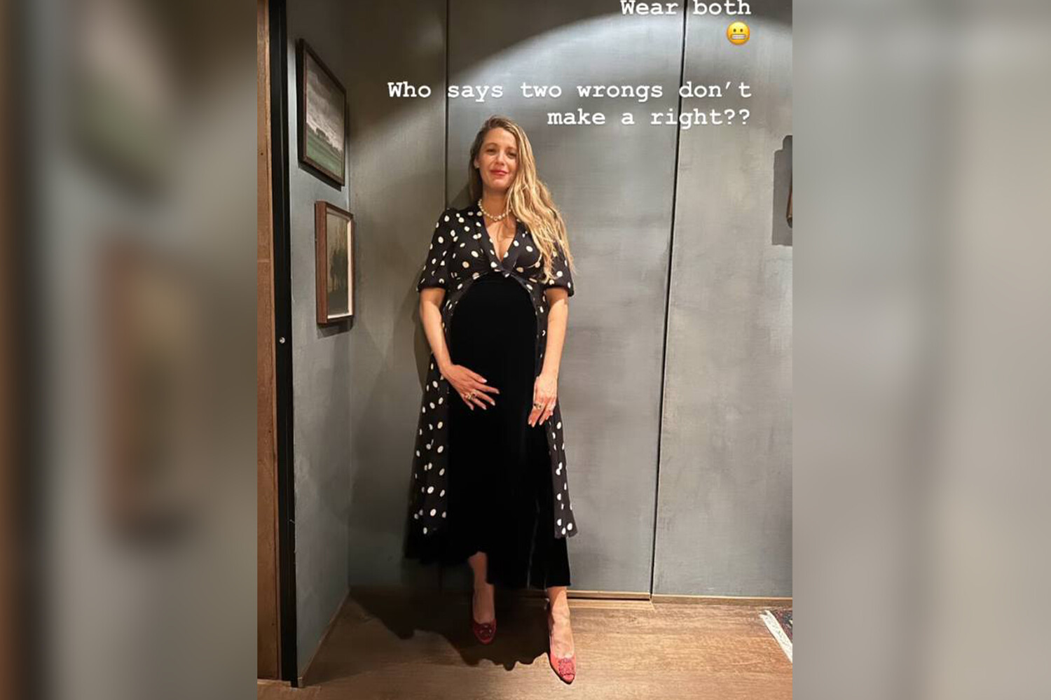 Блейк Лайвли опубликовала новую фотографию, на которой предстала в провокационном аутфите: платье поверх юбки. Образ она дополнила красными лодочками на низком каблуке, жемчужным ожерельем и кольцами. Оказалось, что актриса не смогла застегнуть молнию из-за беременного живота.