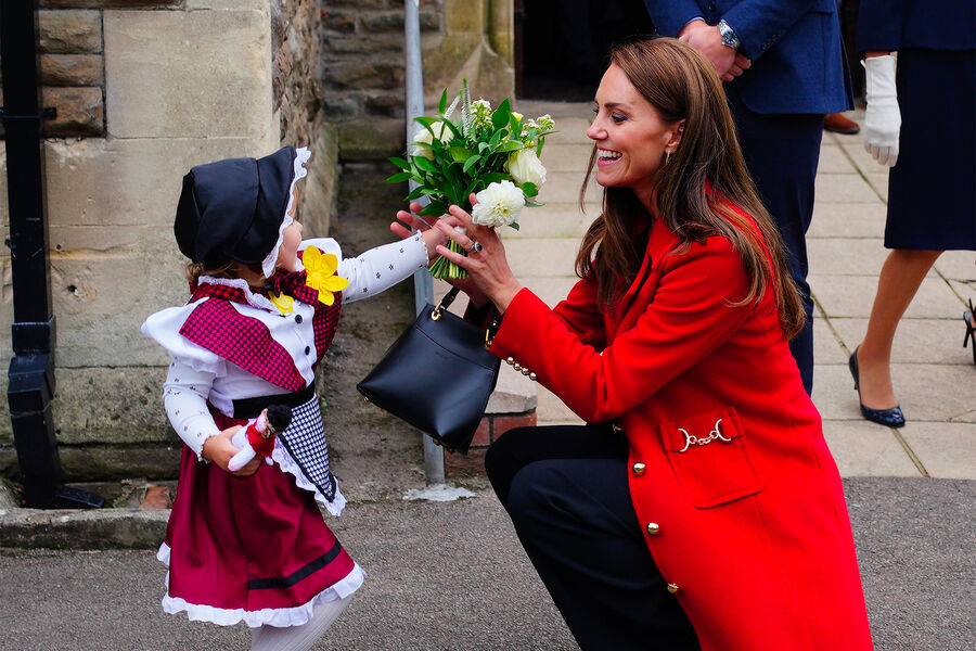 В посте опубликована фотография Кейт Миддлтон, получающей букет цветов от двухлетней девочки по имени Шарлотт Бантинг во время визита в город Суонси в конце сентября прошлого года.