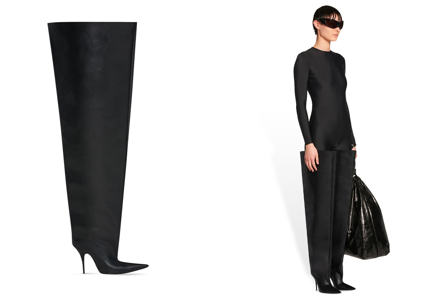 В своей зимней коллекции Balenciaga представили высокие кожаные сапоги на шпильке с широким голенищем. Сапоги из телячьей кожи стоимостью $3 тыс. напомнили пользователям сети водонепроницаемые «бродни», которые носят рыболовы.