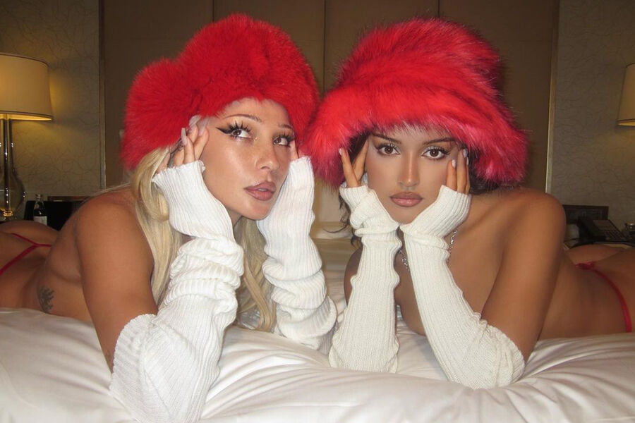31-летняя Настя Ивлеева и 23-летняя Дина Саева опубликовали в социальных сетях серию фотографий, на которых предстали топлес. Девушки позировали, лежа на кровати, а из одежды на них были меховые панамы, митенки и стринги. Вдобавок они сделали одинаковый макияж — с тонкими бровями и подведенными коричневым карандашом губами.