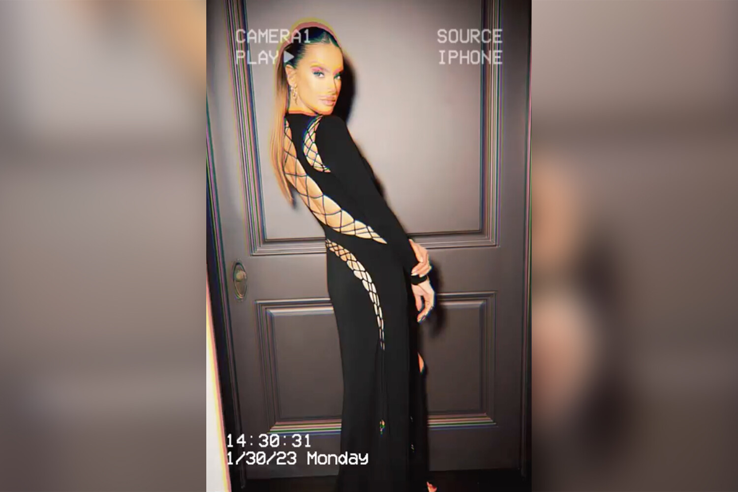 41-летняя Алессандра Амбросио продемонстрировала стройную фигуру в откровенном платье. Для нового выхода в свет модель выбрала черное платье в сетку с разрезом до середины бедра. Образ туфли на высоком каблуке и золотые украшения. Волосы Алессандра Амбросио завязала в тугой высокий хвост. Ей сделали нюдовый макияж с блеском на губах.