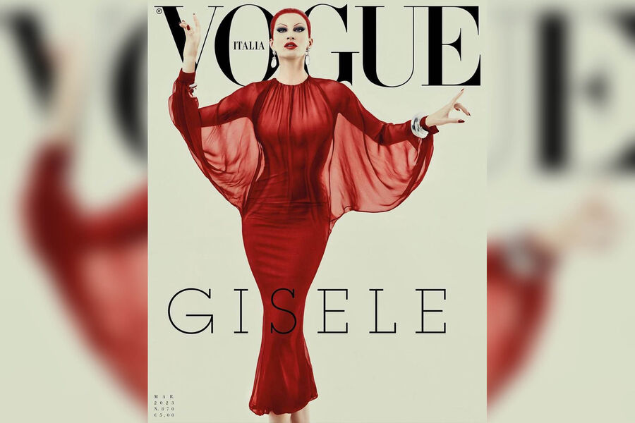 42-летняя Жизель Бюндхен снялась в красном платье и повязке. Модели сделали макияж с белоснежной пудрой, «бровями-ниточками», пышными накладными ресницами и алой помадой. Образ дополнили массивные серебряные украшения. Фотографом съемки выступил Рафаэль Паваротти. Поклонники не узнали супермодель на новой обложке Vogue.