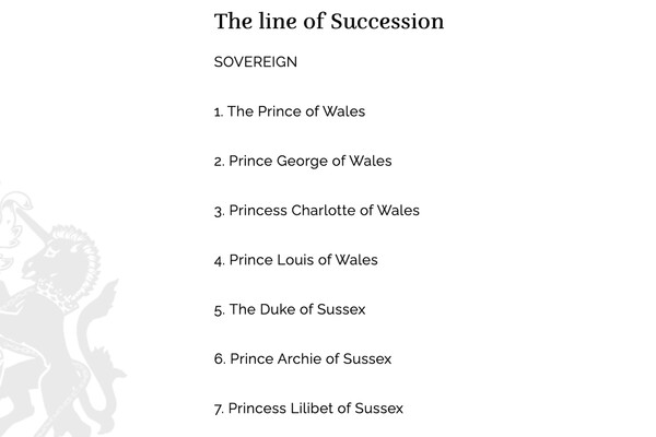 На официальном сайте королевской семьи Великобритании появились изменения. Теперь там говорится, что дети герцога и герцогини Сассекских отныне будут носить титулы принца и принцессы. Ранее они фигурировали на странице линии преемственности как мастер Арчи Маунтбеттен-Виндзор и мисс Лилибет Маунтбеттен-Виндзор, а с сегодняшнего дня указаны на сайте как принц Арчи Сассекский и принцесса Лилибет Сассекская.