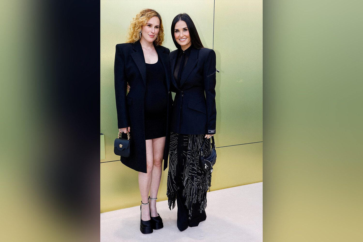 60-летняя Деми Мур и 34-летняя Румер Уиллис стали гостьями показа Versace FW'23/24, который прошел в минувший четверг, 9 марта, в Pacific Design Center в Западном Голливуде (штат Калифорния, США). Актриса появилась на публике в прозрачной блузе, поверх которой надела жакет, и длинной юбке со стразами. В свою очередь, ее старшая дочь, ожидающая скорого пополнения, выбрала для первого беременного выхода в свет «плечистое» пальто, короткое обтягивающее платье и туфли на платформе и каблуке.